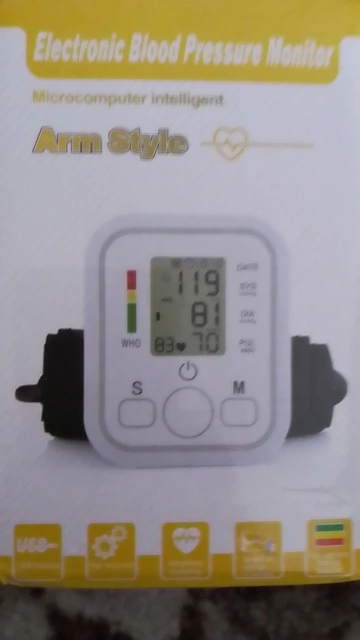 I received the blood pressure monitor. It works perfectly with four batteries or by charging. I'm satisfied!